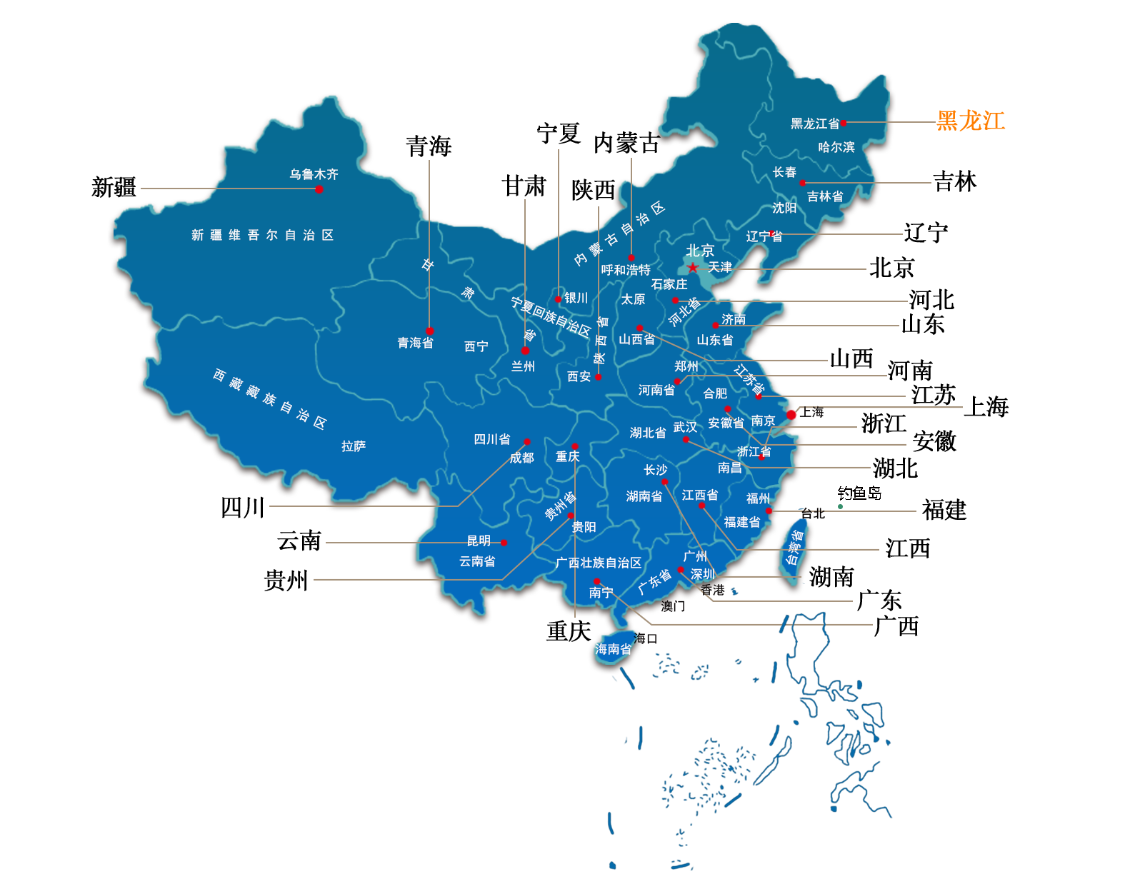 中國(guó)共有省級(jí)行政區(qū)34個(gè),具體為: